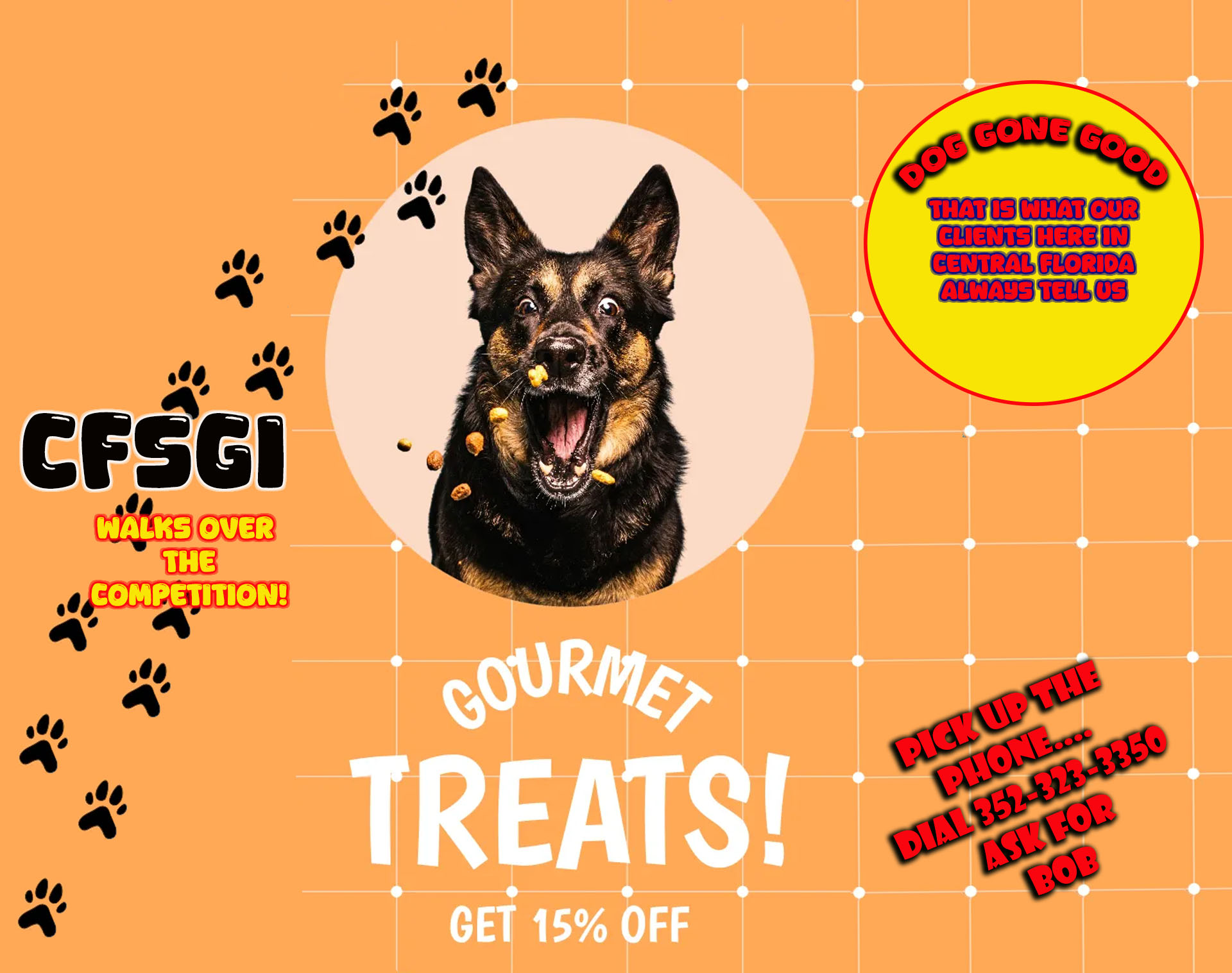 'Even this German Sheperd cannot believe how good we are. Call 352-323-3350.'