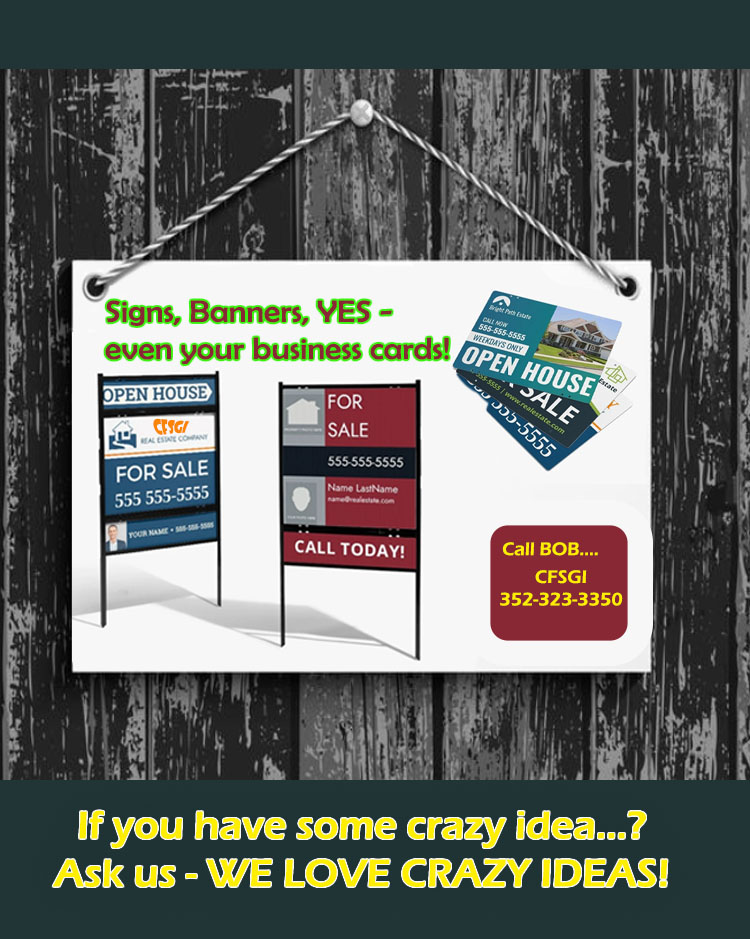 'Hamburger Joints, pizza places, steak houses - we can handle any dish at any time - big or small. Even highway billboards! Bob Rudinsky will take your call at 352-323-3350.'